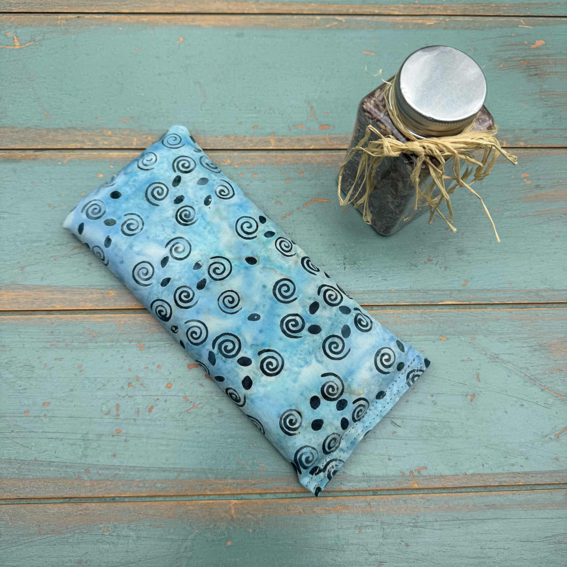 The eye pillow measures 4" x 8" and is just the right size to provide the right combination of weight, heat, and fragrance. Great for yoga, meditation, or migraine relief. Each pillow comes neatly packaged in a reusable Ziplock bag with directions attached. The photo is the actual fabric you will receive and can include a matching removable machine washable cover if selected.