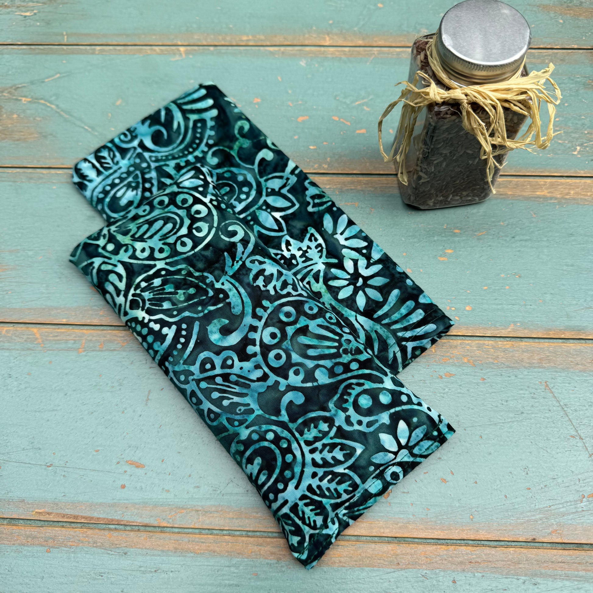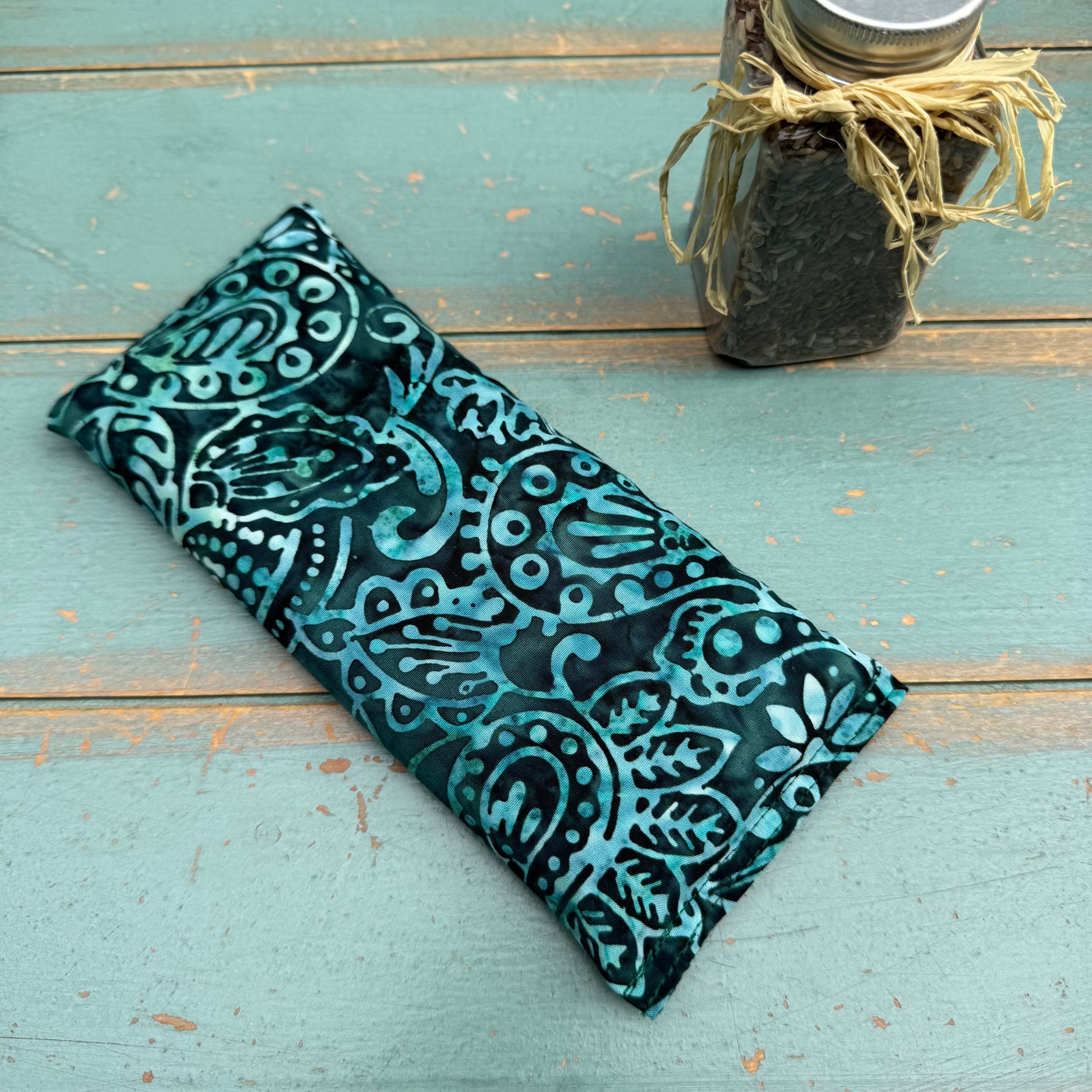 The eye pillow measures 4" x 8" and is just the right size to provide the right combination of weight, heat, and fragrance. Great for yoga, meditation, or migraine relief.  Each pillow comes neatly packaged in a reusable Ziplock bag with directions attached. The photo is the actual fabric you will receive and can include a matching removable machine washable cover if selected.