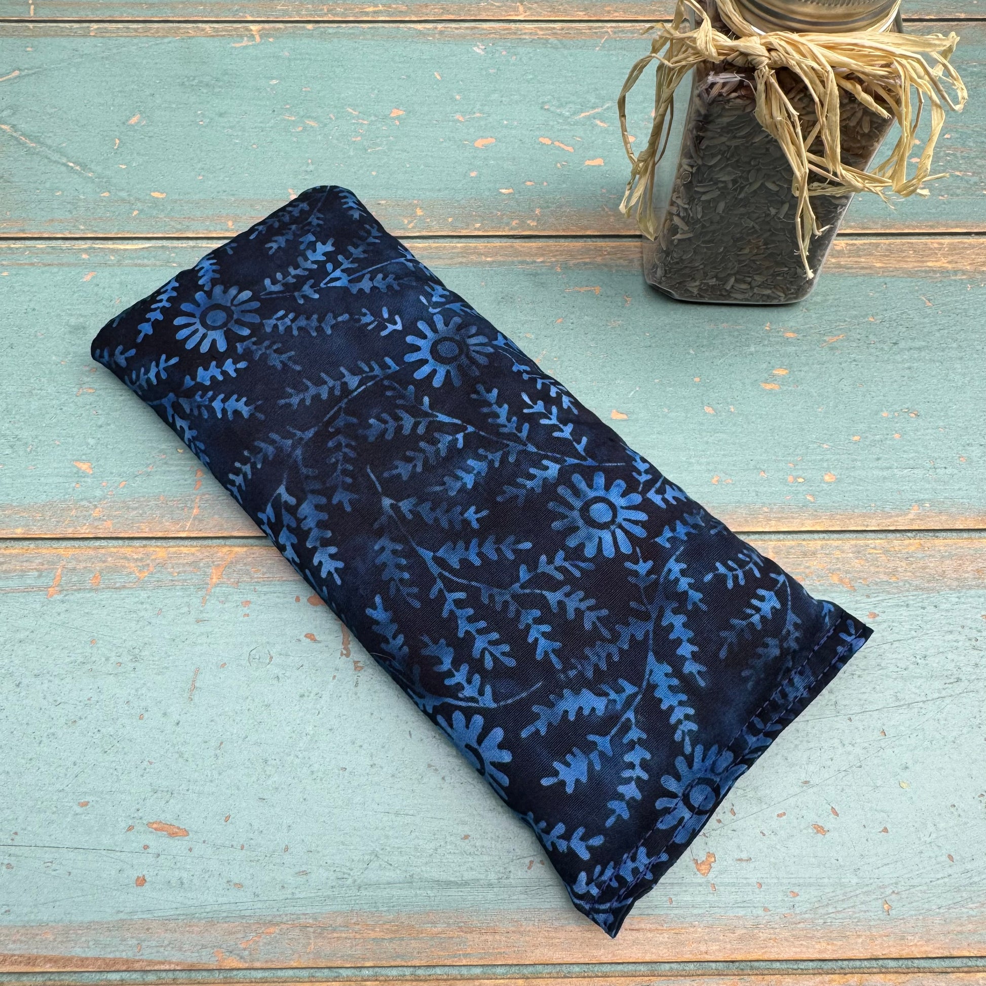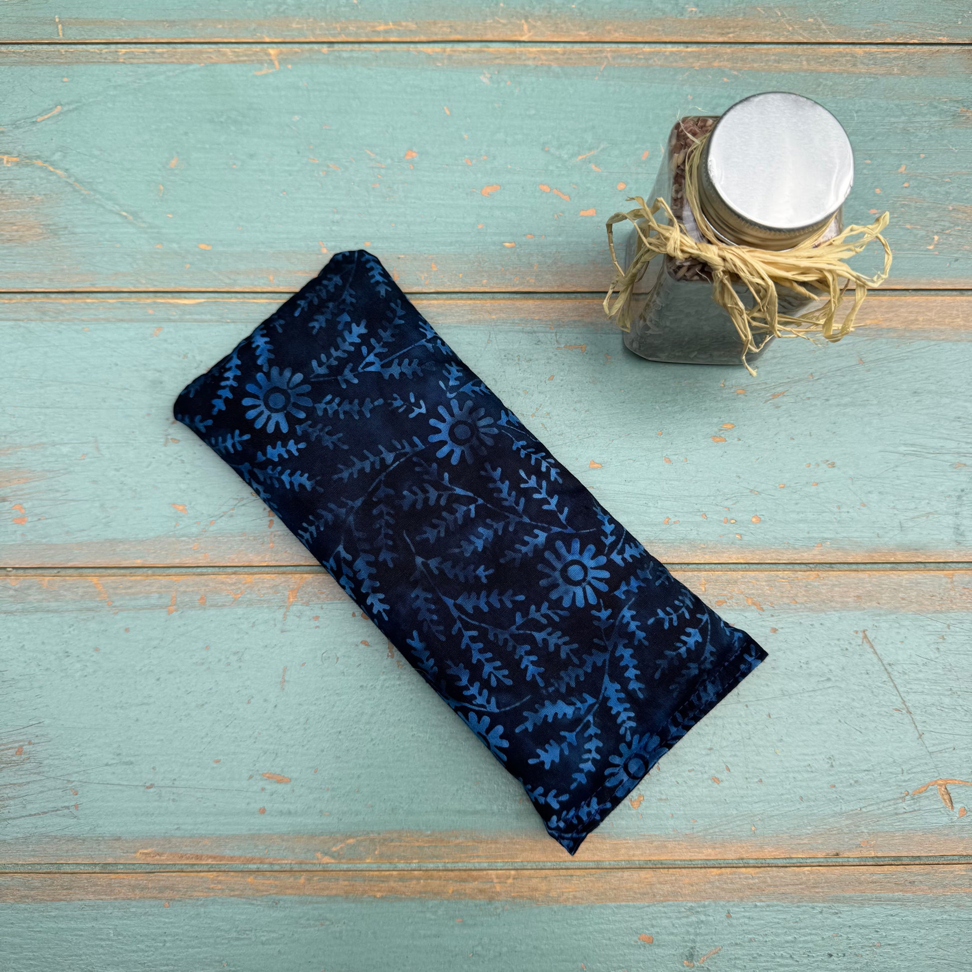 The eye pillow measures 4" x 8" and is just the right size to provide the right combination of weight, heat, and fragrance. Great for yoga, meditation, or migraine relief.  Each pillow comes neatly packaged in a reusable Ziplock bag with directions attached. The photo is the actual fabric you will receive and can include a matching removable machine washable cover if selected.